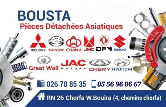 Pièces détachées Bousta est votre spécialiste en pièces automobiles pour véhicules asiatiques. Nous proposons un large choix de pièces de qualité pour Hyundai, GreatWall, Gonow, Suzuki et bien d'autres marques. Faites confiance à notre expertise pour entretenir et réparer votre voiture au meilleur prix.Contact